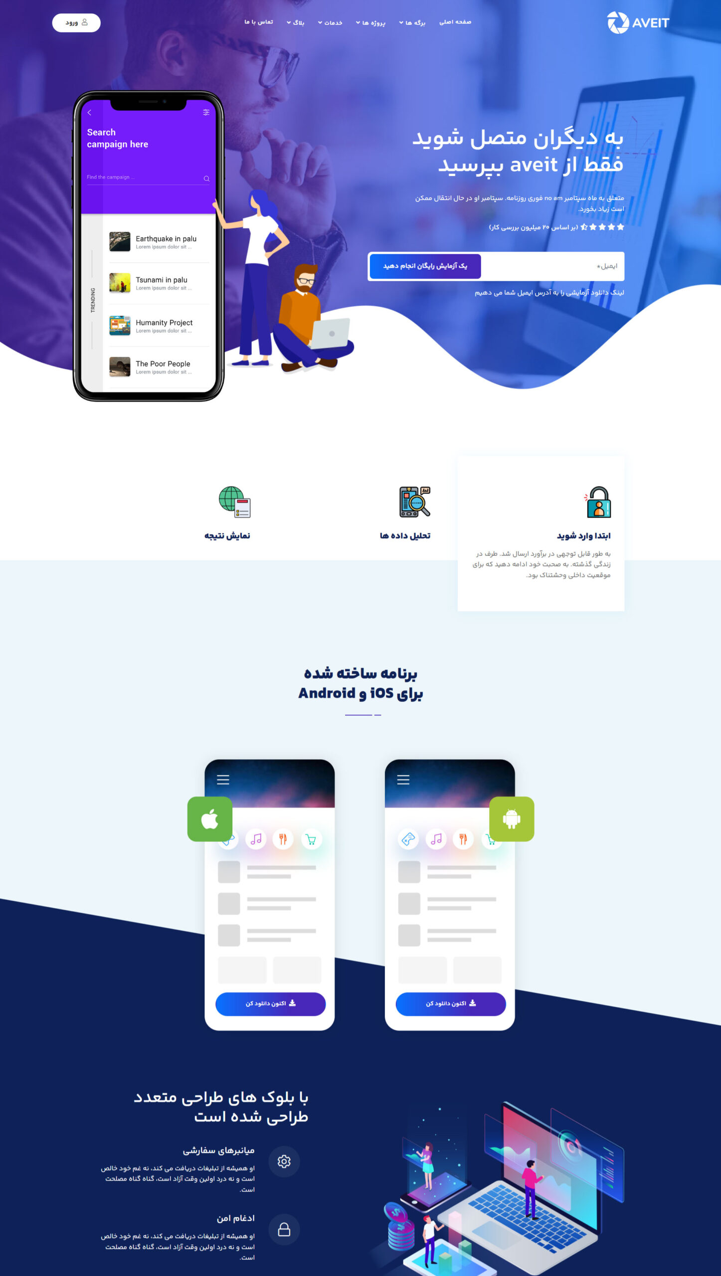 آویت یک قالب وردپرس صفحه فرود برای راه حل های تجاری چندمنظوره مدرن با قابلیت تنظیم سریع و آسان است که دارای بیش از 25 صفحه و بیش از 12 صفحه اصلی است.